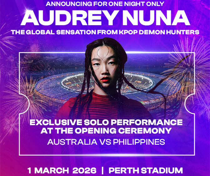 Audrey Nuna is known to millions around the world as the singing voice of Mira in the global hit film KPop Demon Hunters. Her appearance at the Opening Ceremony offers fans a once-in-a-lifetime chance to see the star perform live, in a special solo performance created exclusively for the AFC Women’s Asian Cup Australia 2026™. Audrey will treat fans to a special non-broadcast performance to be seen exclusively inside Perth Stadium.
